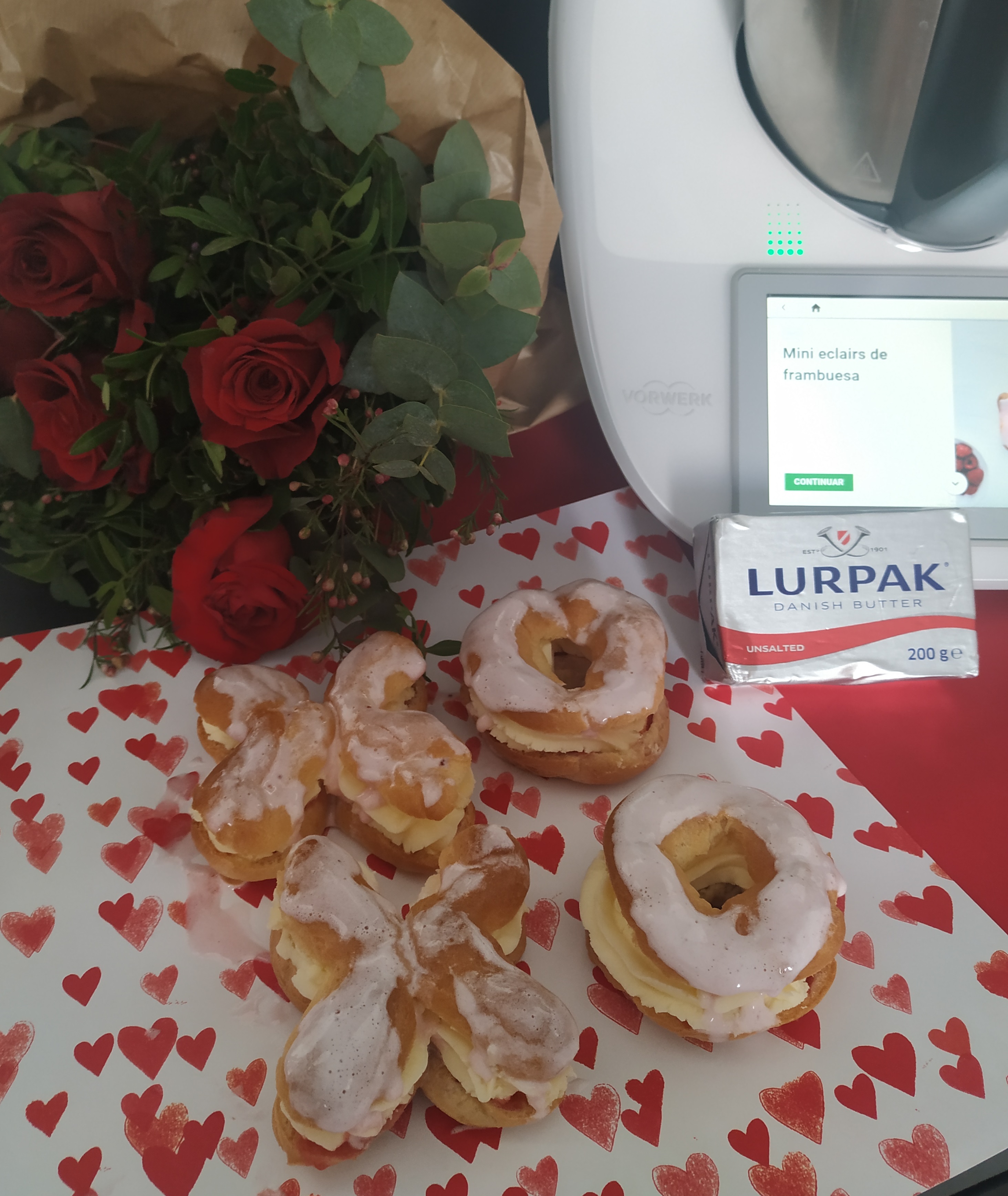 Para este San Valentin y ayudándome de la siguiente receta https://cookidoo.es/recipes/recipe/es-ES/r608001 he creado estos eclairs. Aquí os dejo la receta para que probéis algo un poco diferente y aprovechamos que las fresas ya están llegando a nuestras fruterías.