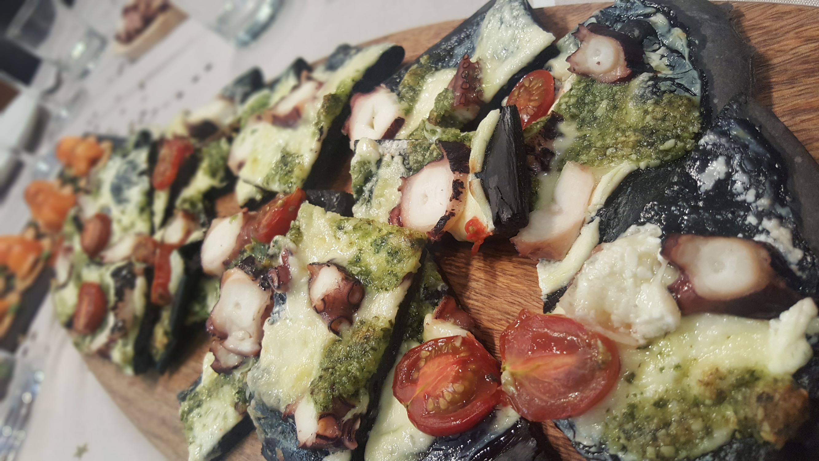 PIZZA NERO DI SEPIA AMB POP I PESTO D'AMMETLLA
