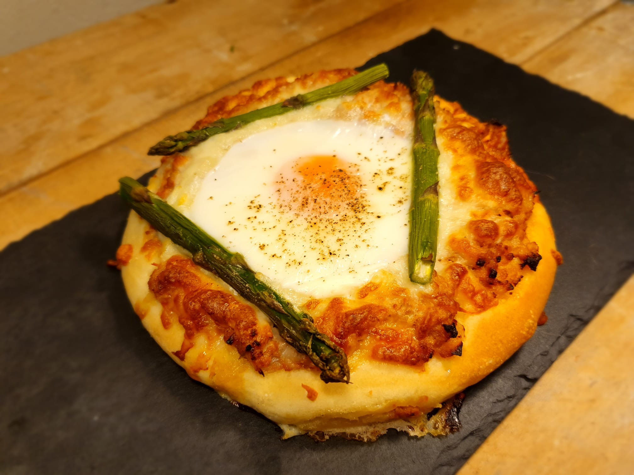 PIZZETA DE CARN AMB ESPÀRRECS I OU