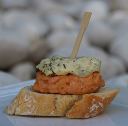 Mini-Hamburguesa de salmón con salsa tártara