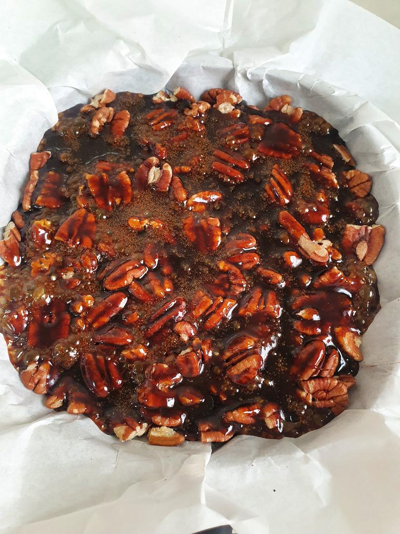 El crocanti l'he realitzat amb cuina guiada. És una recepta on es cuina amb alta temperatura i només és possible realitzarla amb el model TM6. Haureu de buscar la recepta: crocanti de cacahuetes a Cookidoo i substituir els cacahuets per les nous. En el cas que tinguis un model anterior de Thermomix, hauries de realitzar el caramel en una paella amb l'aigua, el sucre i la mantega. Quan estigui caramelitzat, abocar-lo sobre les nous previament esteses en un motlle o recipient resistent al calor i folrat amb paper de forn.