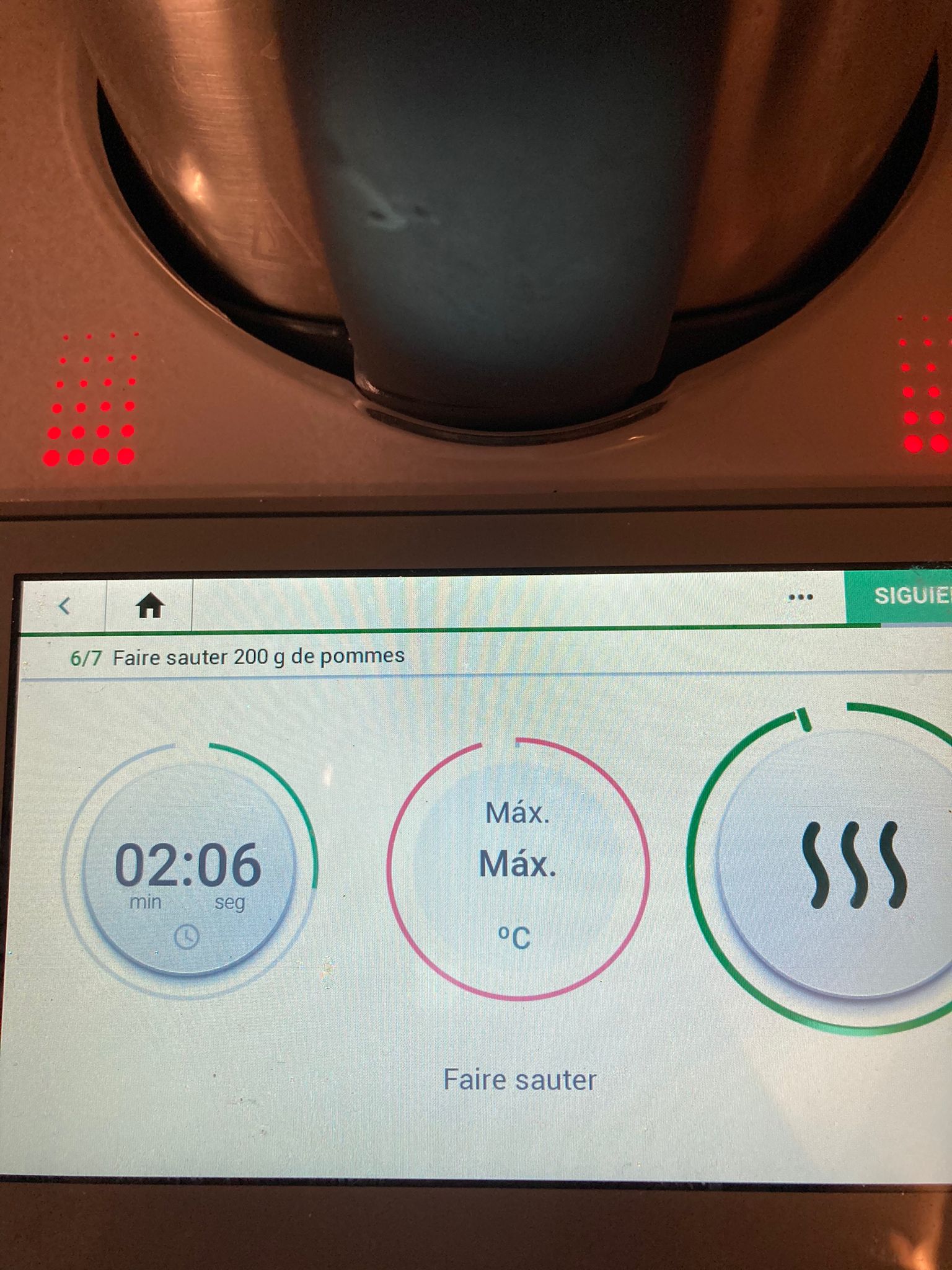 - Ponga en el vaso la mantequilla clarificada, la manzana cortada. A daditos, el azucar y la canela. Activar el modo alta temperatura y poner el antisalpicaduras