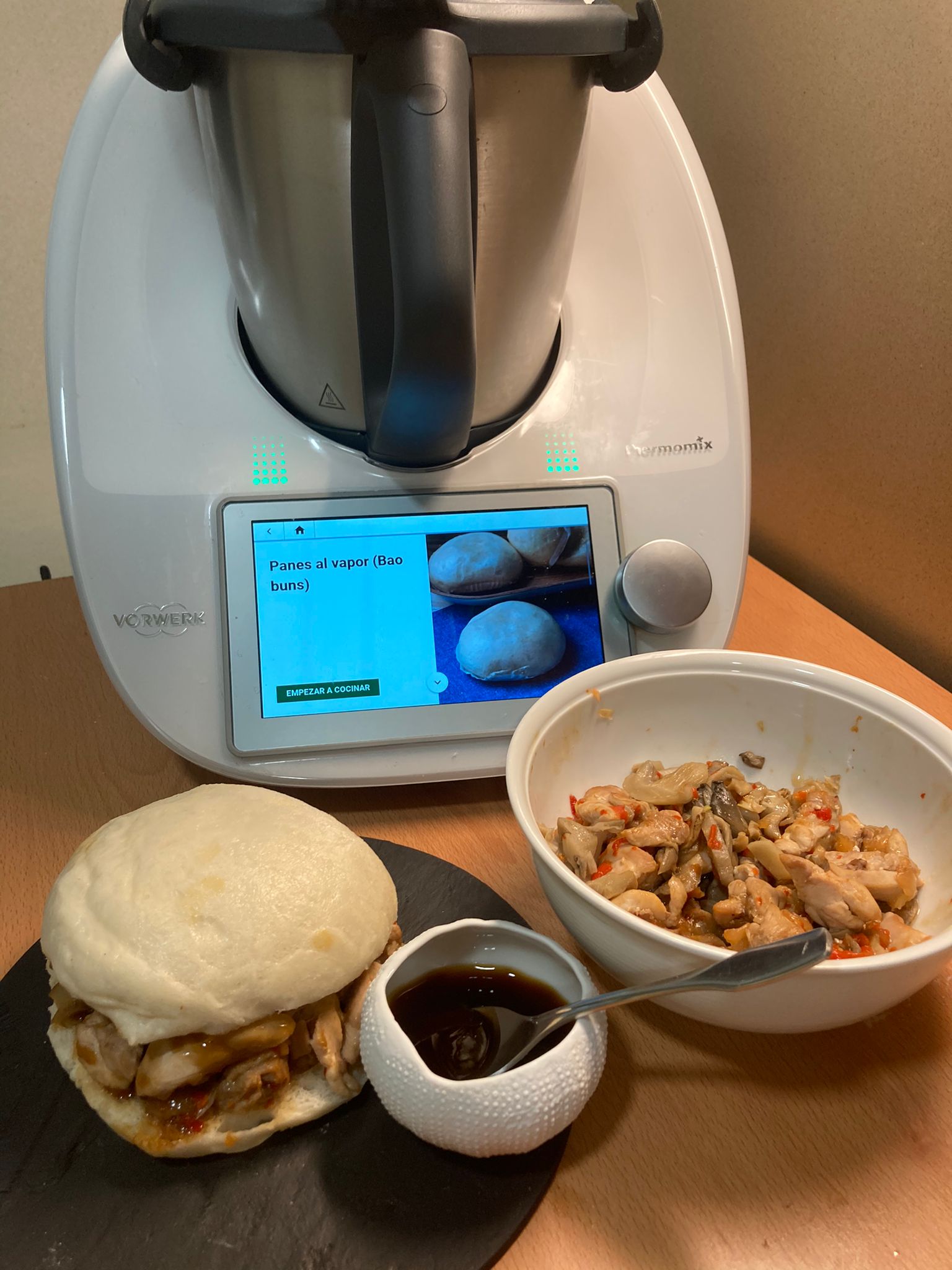 Los panes al vapor Bao Buns son unos panecillos usados en comida callejera de origen asiático. El relleno del bao puede ser cualquiera: salmon y espárragos, secreto ibérico, a la catalana, calamares, vegetarianos, de cerdo, de pollo de pescado... Podéis encontrar variantes en Cookidoo, o inventaros la vuestra con lo que tengáis en la nevera.