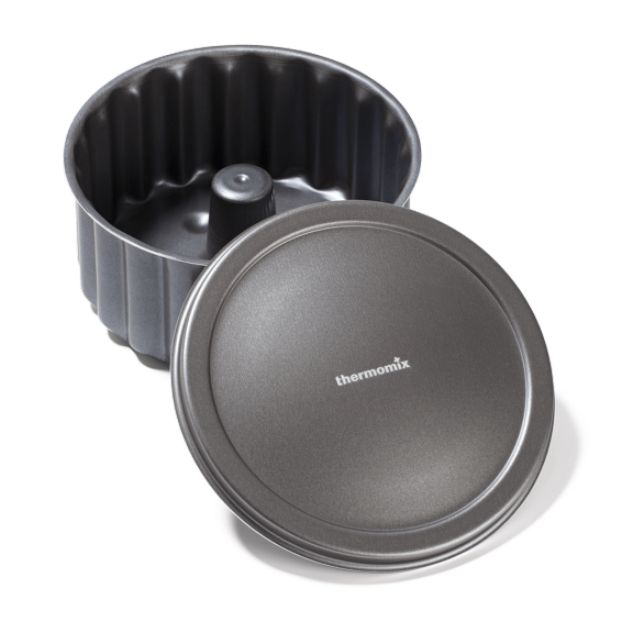 - Vierta 2-3 cucharadas de caramelo líquido en el fondo de la flanera de aluminio Thermomix® y reserve.