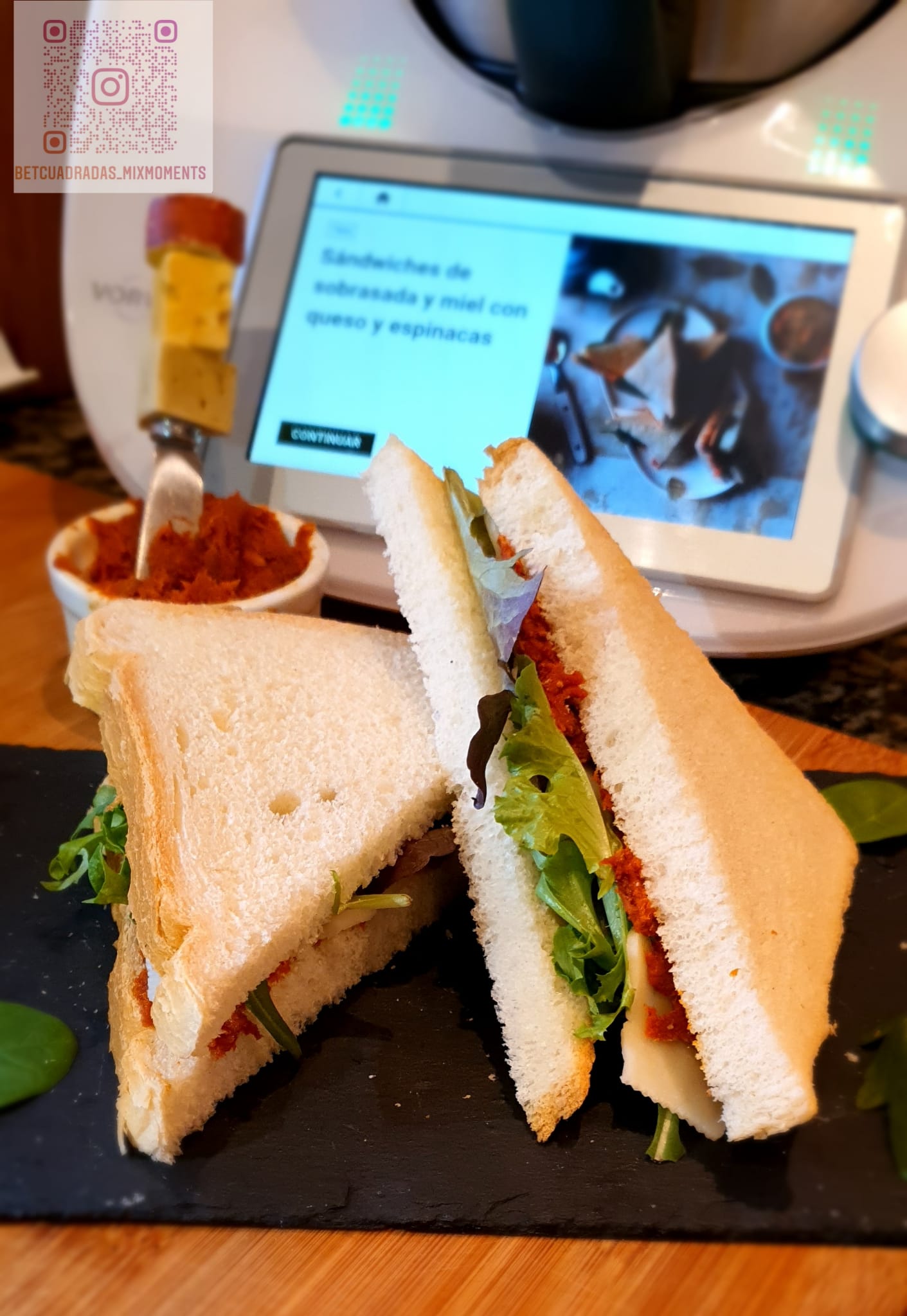 SANDWICHES DE SOBRASADA Y MIEL CON QUESO Y ESPINACAS EN THERMOMIX ®