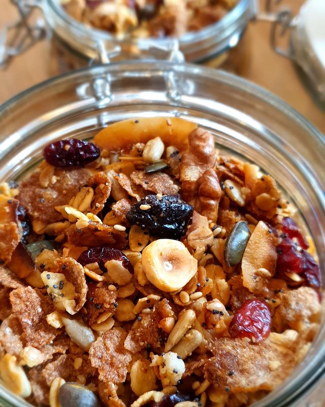 Ideal para acompañar con yogur y/o fruta fresca para desayunar o como tentempié o snack. Sus propiedades saludables inherentes de sus ingredientes la han catapultado a la cresta de la ola de alimentos saludables.
