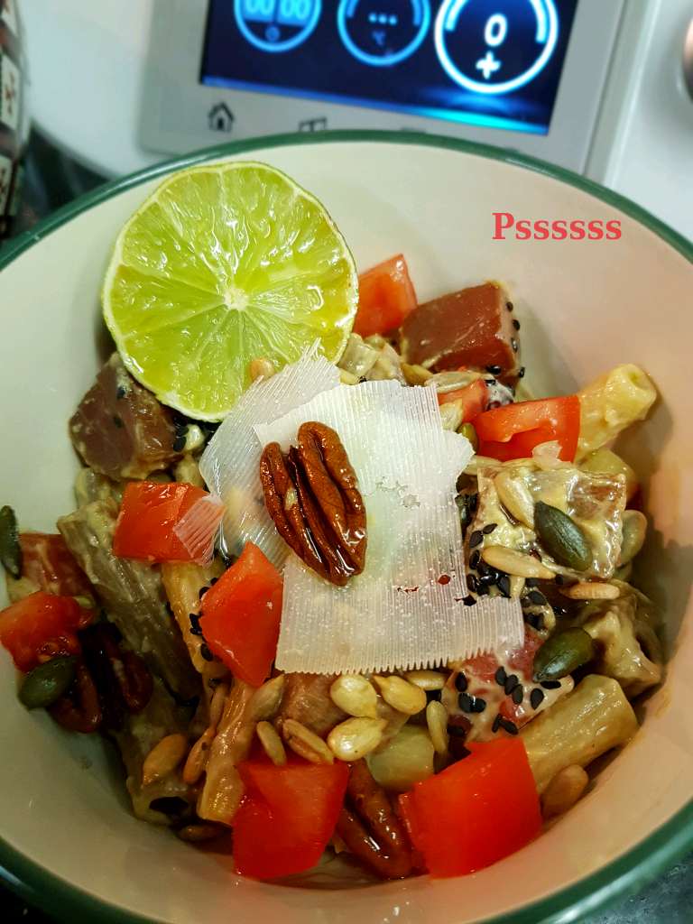 BOWL DE PASTA MULTICEREALES CON ATÚN FRESCO Y SALSA DE AGUACATE EN THERMOMIX ®