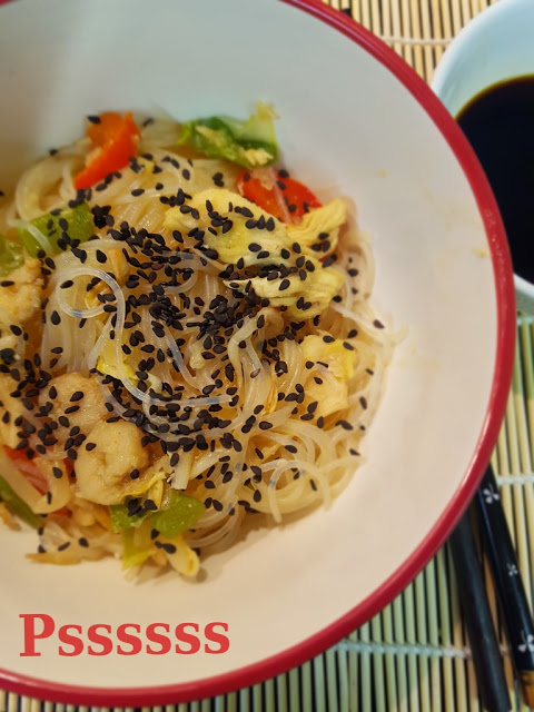 FIDEOS YAKISOBA CON POLLO Y GAMBAS EN THERMOMIX ®