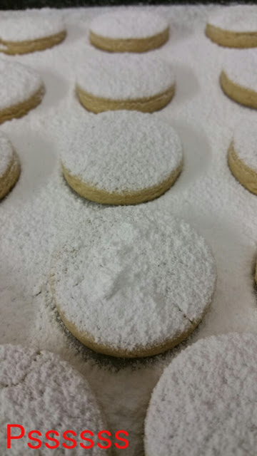 6. Espolvorea la superficie de trabajo con azúcar glas y extiende la masa con un rodillo, hasta obtener 1cm de grosor. Corta medallones con el cubilete y hornea durante 15 minutos.