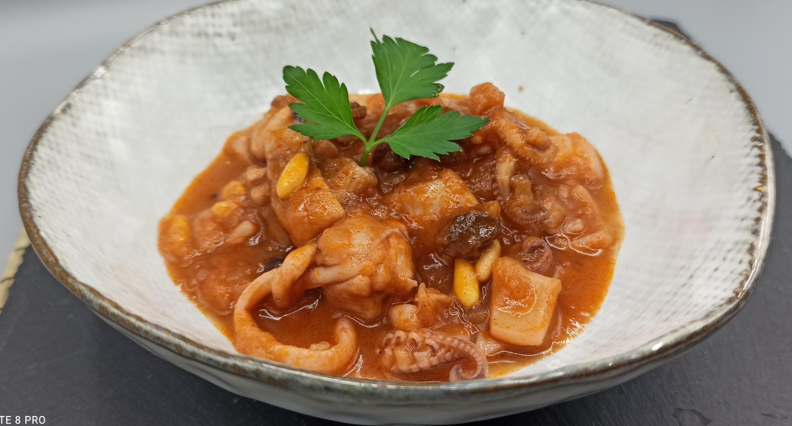 Hace poquito vi que en nuestra fantástica plataforma de recetas de Cookidoo habían puesto una variante, con Calamares! Y no podíamos dejar de probarla, verdad? Bien pues este fin de semana la hemos hecho. Es más sencilla y rápida que la anterior y muy rica. Acompañarla de pan, que de no tenerlo preparado os vais a acordar de una servidora. Aunque yo sigo fiel a la sepia, que por lo general me gusta más, es una receta muy sabrosa que no os va a dejar indiferentes, además lleva un par de sorpresillas..piñones y pasas..umm El contraste queda espectacular.
