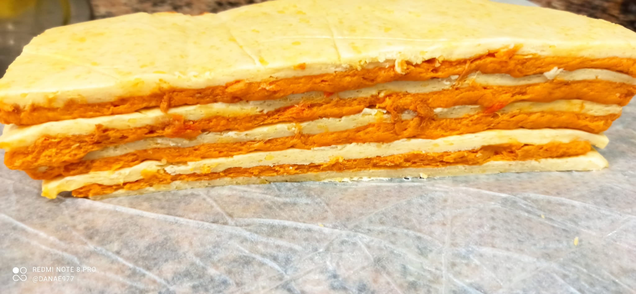 Realizado esto, muy importante ponemos las capas una encima de la otra, empezando siempre por la de Cheddar.