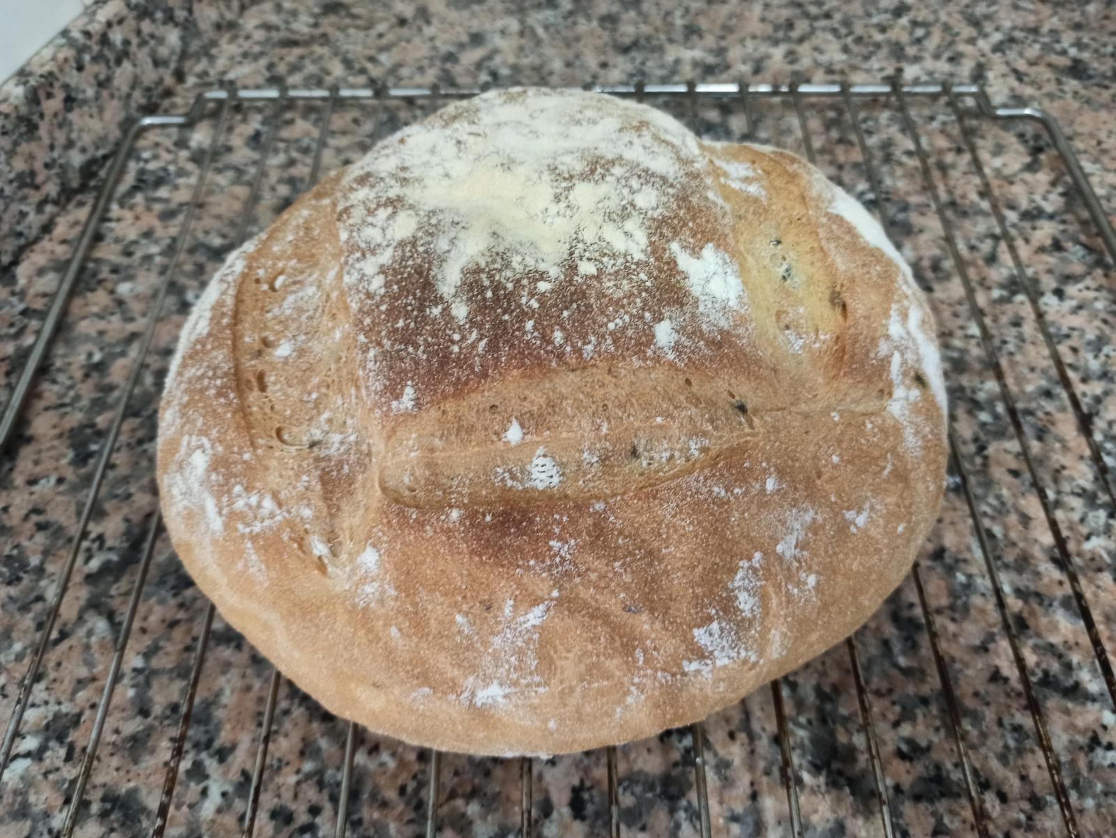 Entre lo tierno que queda este pan, y su corteza crujiente, és una delicia comerlo. Si además como yo, le añadís durante el amasado frutos secos, en mi caso pipas de calabaza,..ya os lo podéis imaginar.