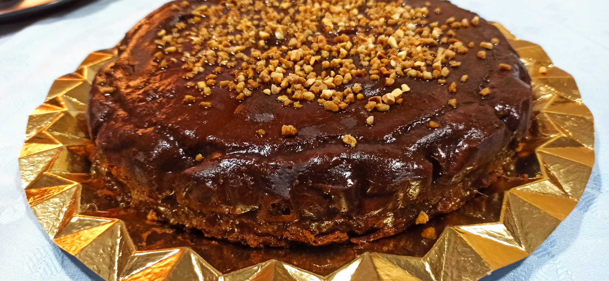 Cubra el bizcocho por la superficie y los laterales y decore al gusto (yo lo he hecho con almendra crocante para conseguir ese crujiente tan rico).