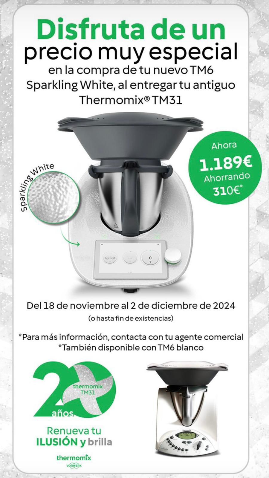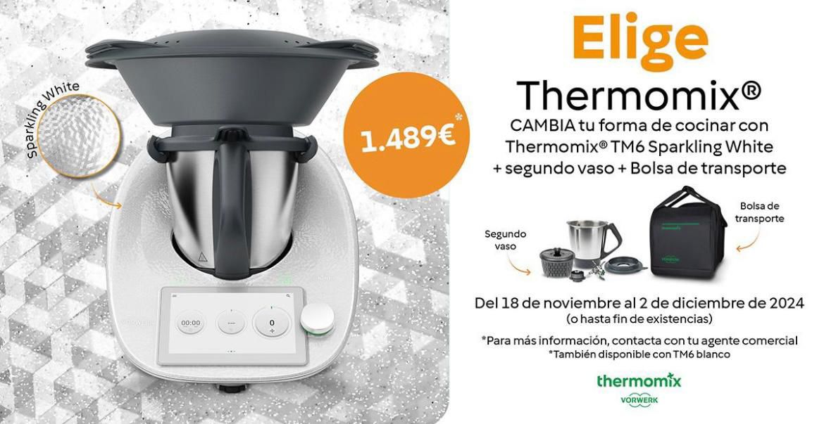 Además tenemos una EDICIÓN LIMITADA sólo esta semana con el Thermomix TM6 SPARKLING WHITE! igual que el normal pero como dice su nombre en inglés, DESLUMBRANTE! BRILLANTE! ..y simplemente Espectacular!!