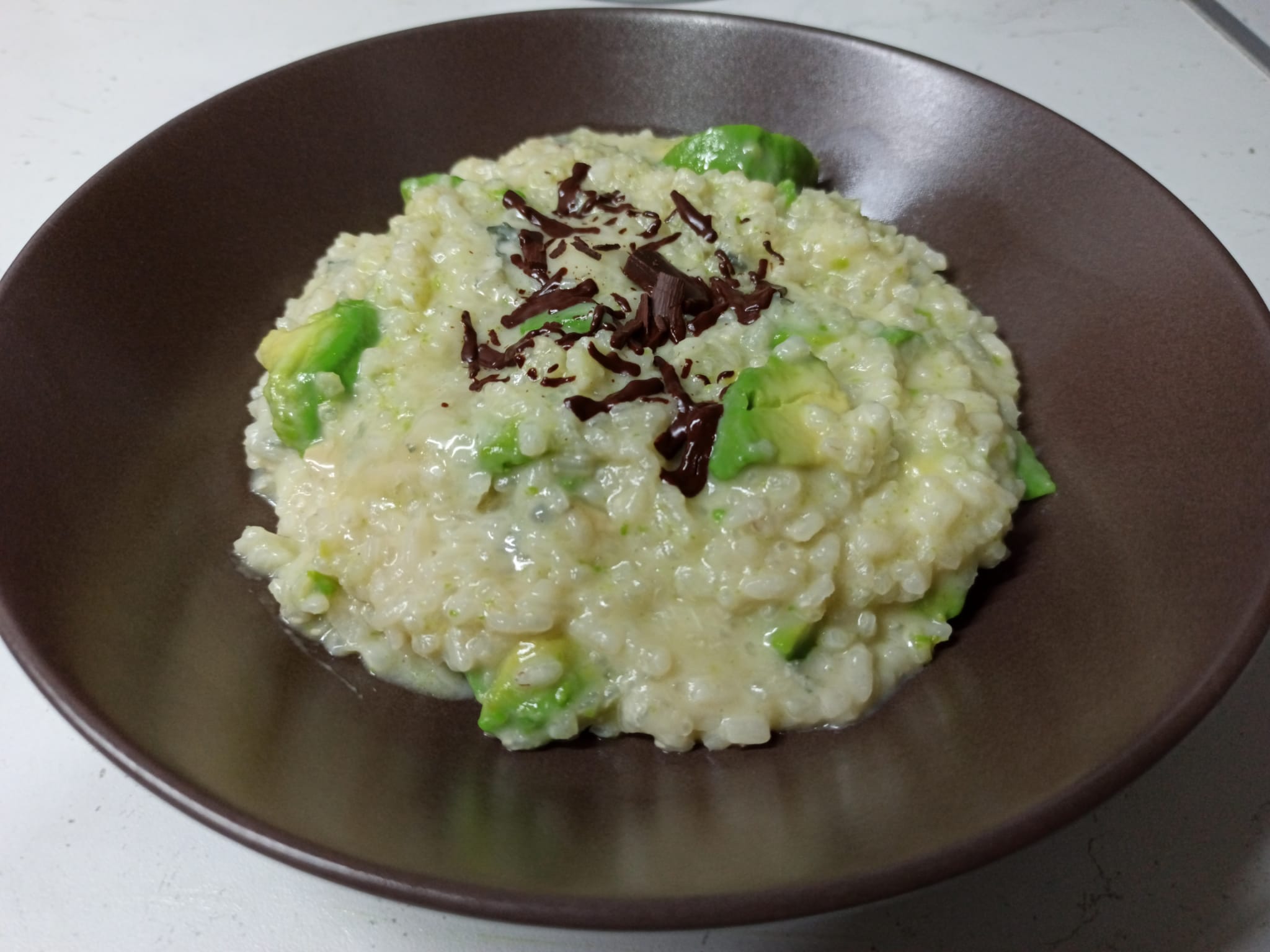 Arroz cremoso con gorgonzola y aguacate con thermomix