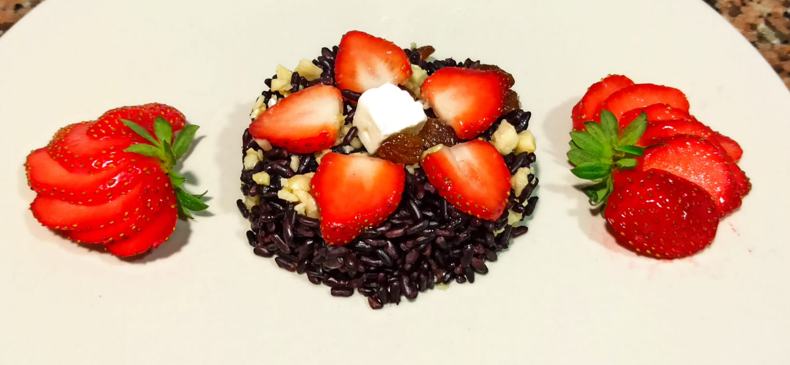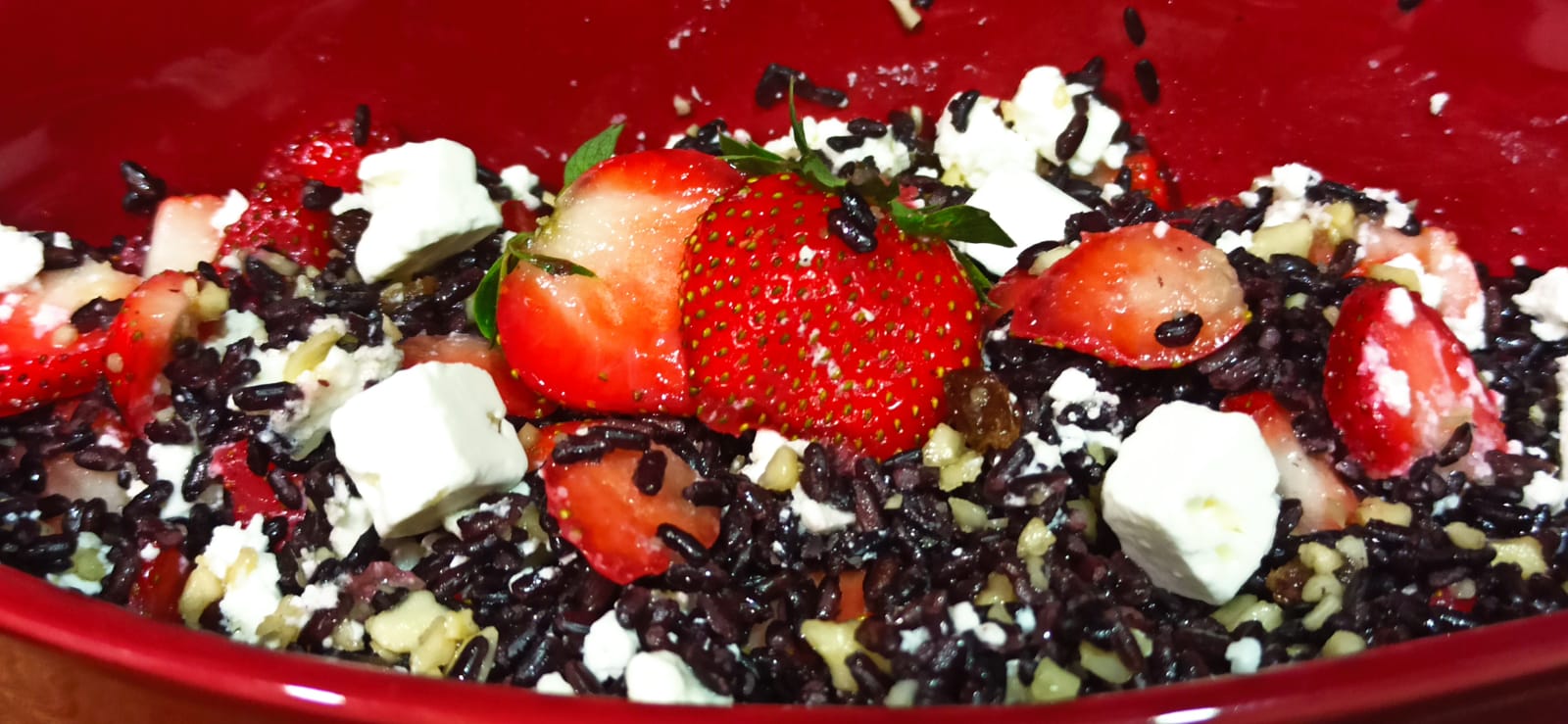 Ensalada de arroz negro con fresas y queso feta con Thermomix (Venere)