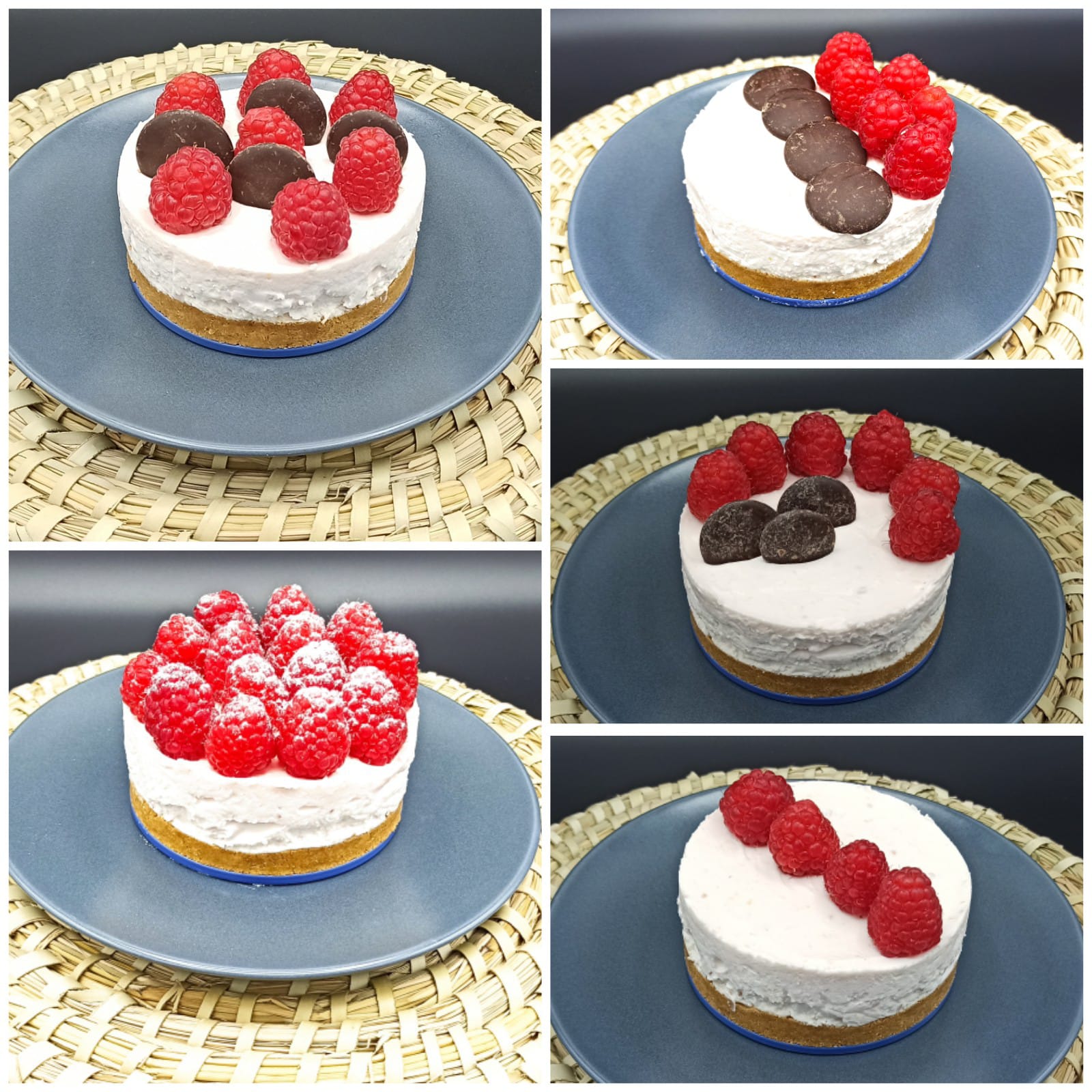 Desmolde el cheesecake, quite el film y decore con 150 g de frambuesas frescas. Corte en porciones y sirva.