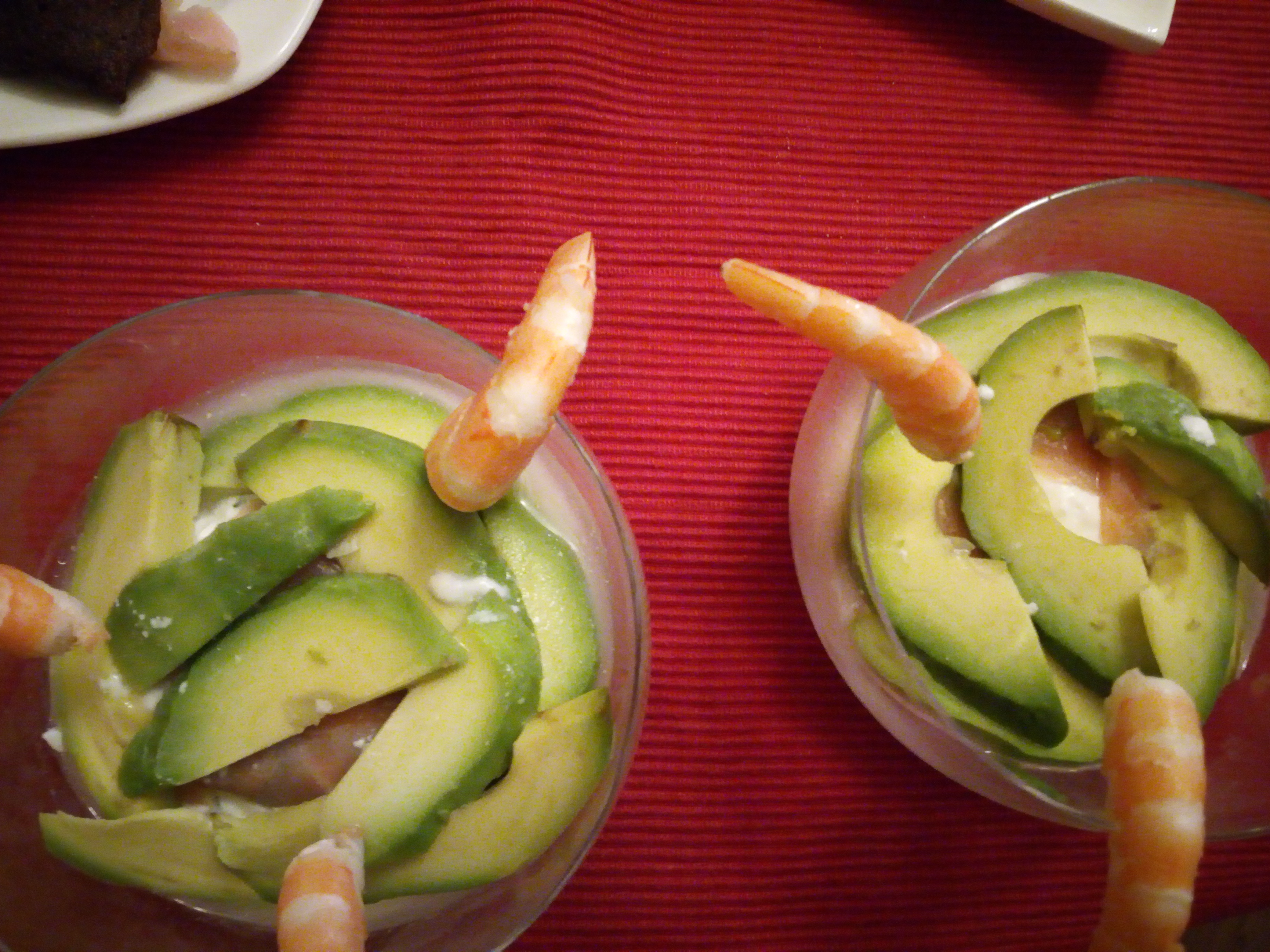 Eurovisión I : Vasitos de salmón, gambas y salsa de queso fresco