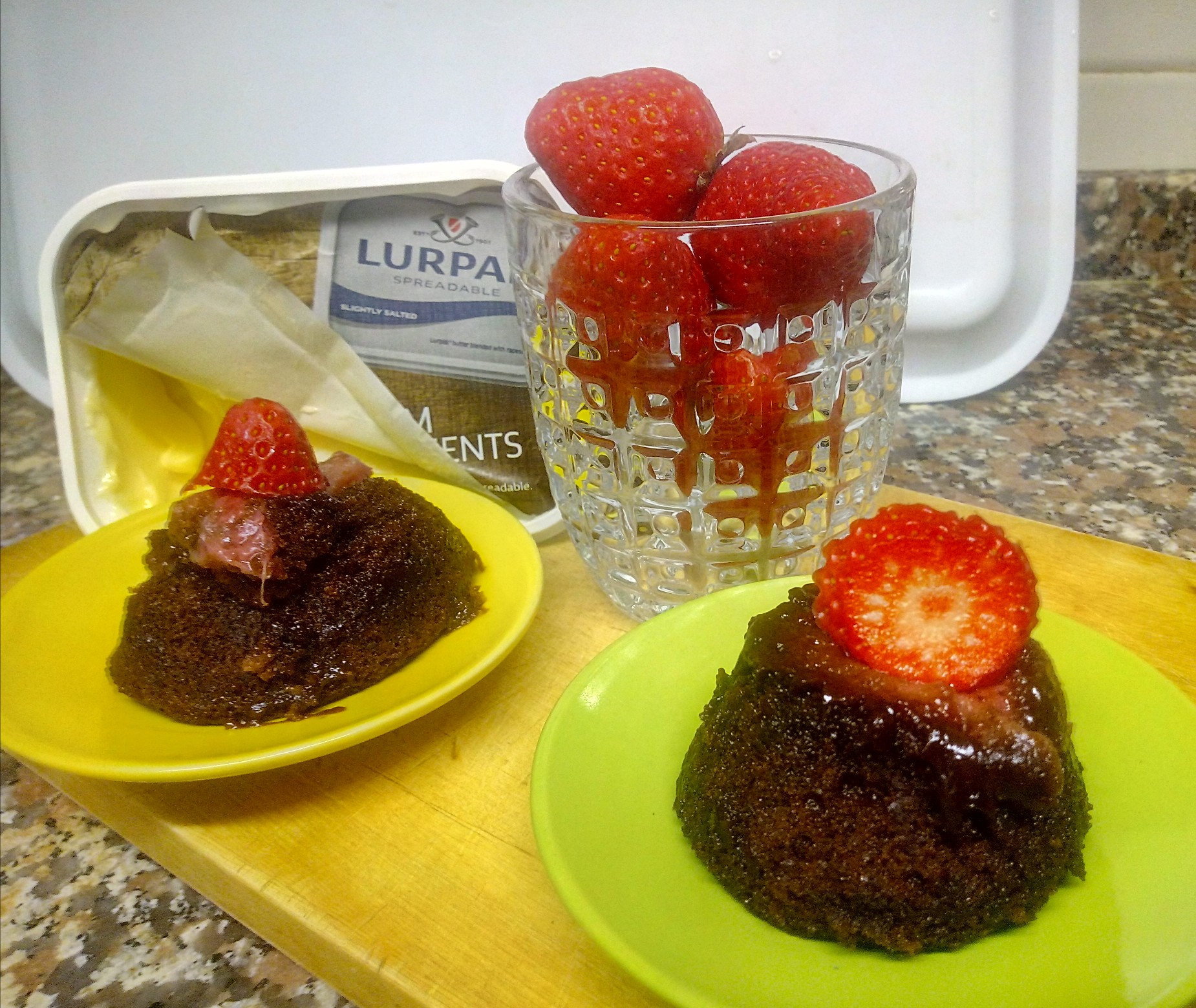 Versión muffins de chocolate al vapor con corazón de frambuesa