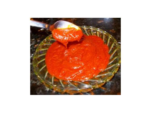 - NOTA: Si el tomate fuera natural triturar primero en velocidad 5-10 habiendo escurrido las semillas y reservar fuera del vaso, antes de empezar a calentar el aceite.