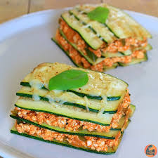 - En una fuente, 20x30 aprox, colocamos una capa con 1/3 de las láminas de calabacín. Ponemos encima la mitad de la boloñesa, cubrimos con otro 1/3 de laminas de calabacín, ponemos el resto de la salsa boloñesa, y cubrimos con el resto de láminas de calabacín.