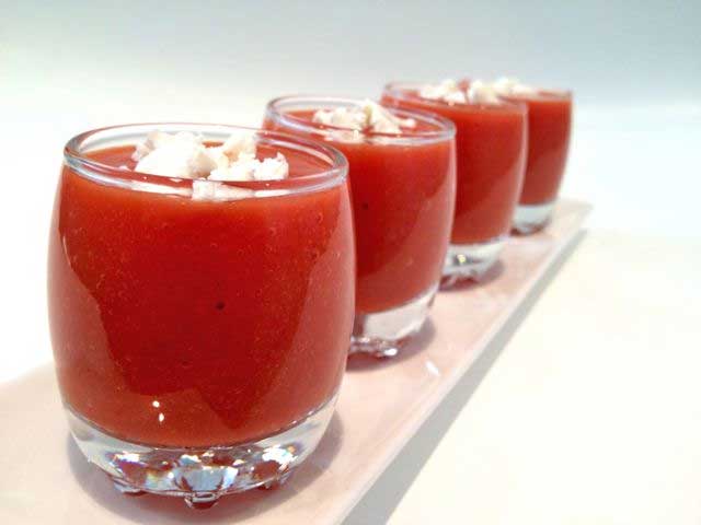 - Pon en el vaso las fresas, los tomates, la cebolla, el pimiento, el pepino, el ajo, el vinagre, el hielo, la sal y la pimienta. Tritura 3 min/vel 10.