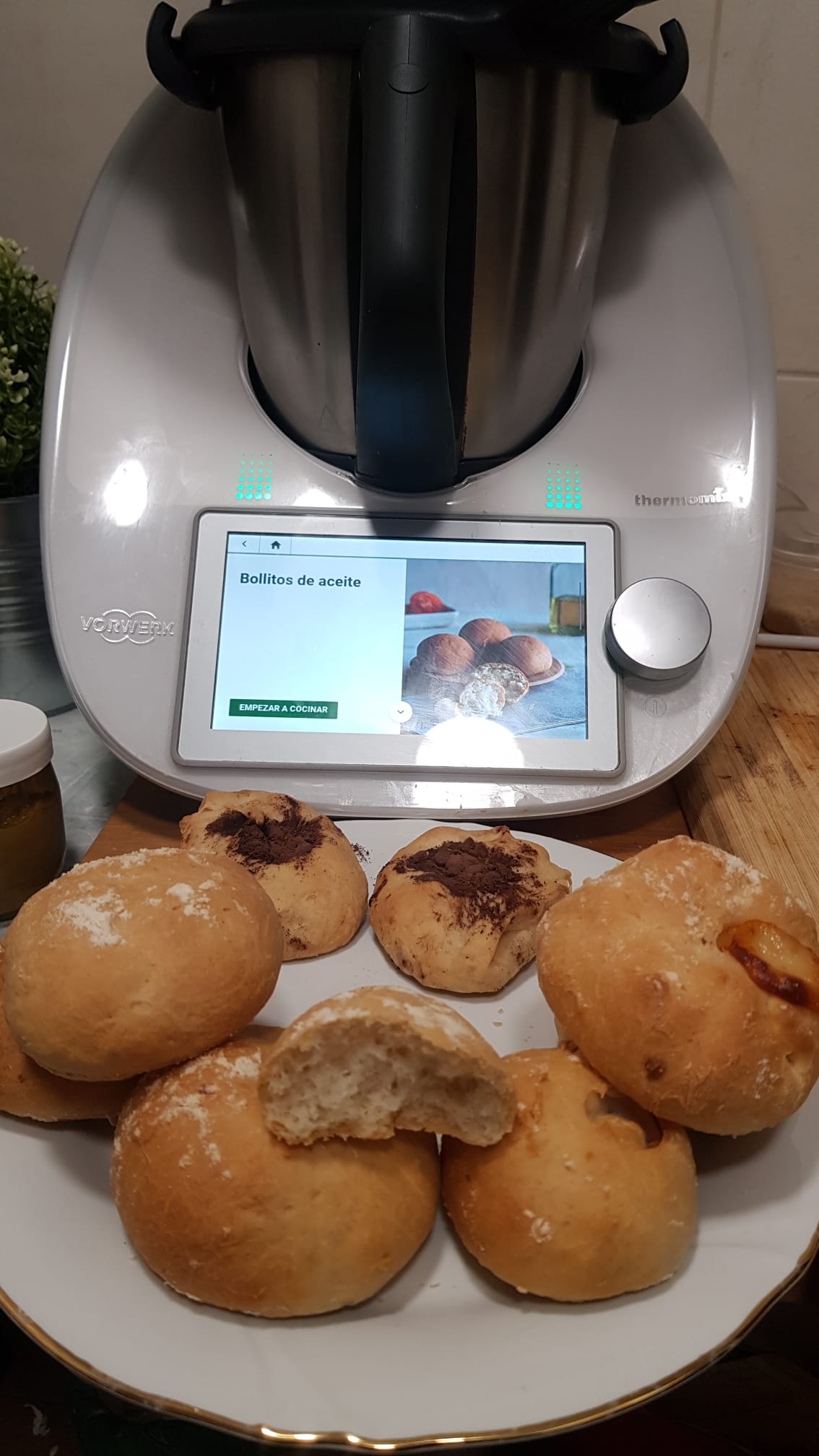 unos bollitos deliciosos de aceite que podemos rellenar de salado, en mi caso puse jamon, pavo, chistorra..y con dulce con chocolate en polvo.