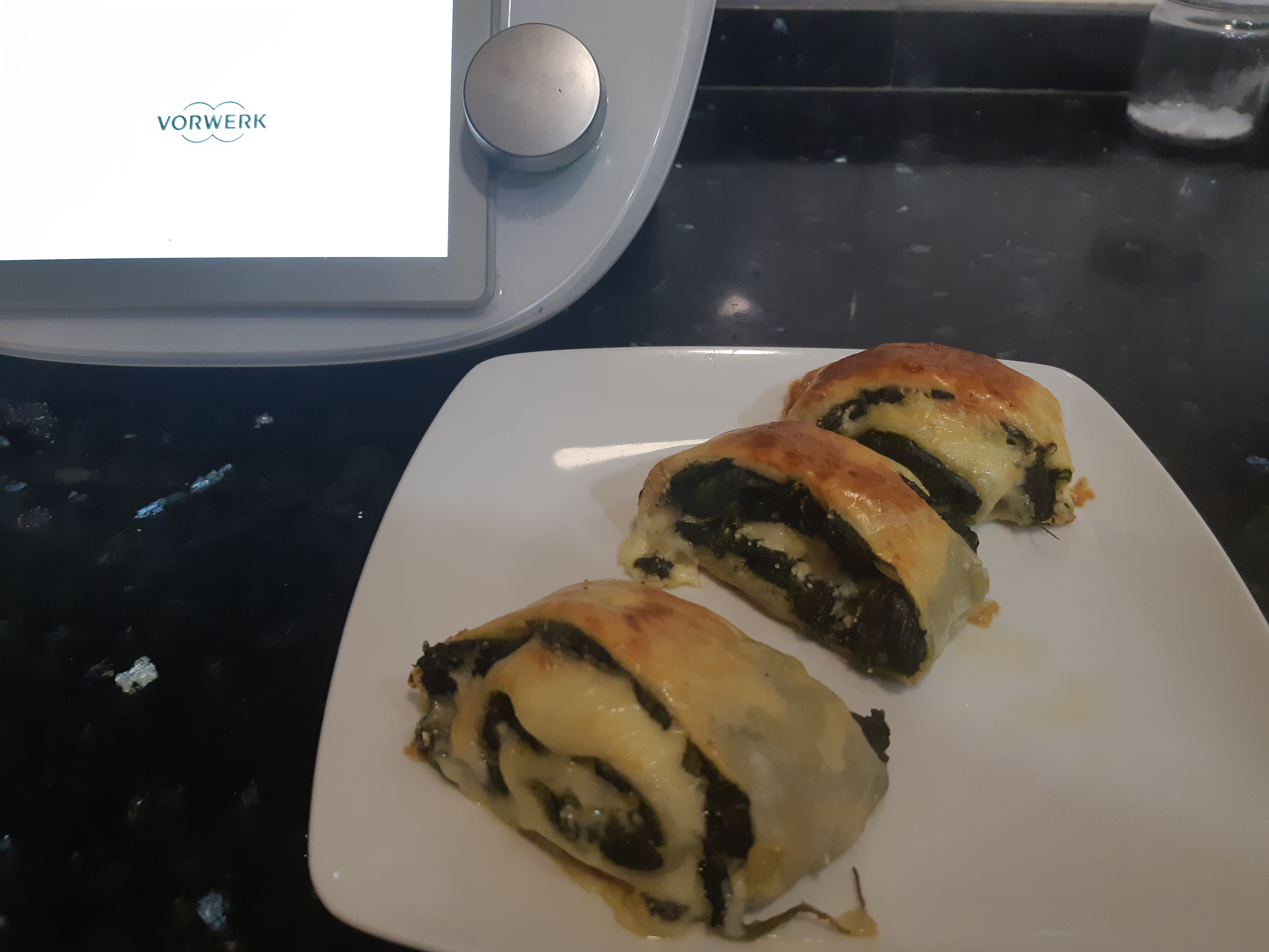 Ponga en el vaso el queso parmesaso y ralle 30 seg/vel 8. Retire a un bol y reserve. Ponga en el vaso el agua y caliente 12 min/100°C/vel 1. Introduzca el cestillo con las espinacas y la sal. Programe 10 min/100°C/vel 3. Con la muesca de la espátula, extraiga el cestillo, deje escurrir las espinacas y vacíe el vaso. Ponga en el vaso el ajo y el aceite, trocee 3 seg/vel 7 y sofría 5 min/120°C/vel 1. Añada las espinacas muy bien escurridas y sofría 5 min/120°C/vel 1. Retire a un bol y deje enfriar durante 30 minutos.