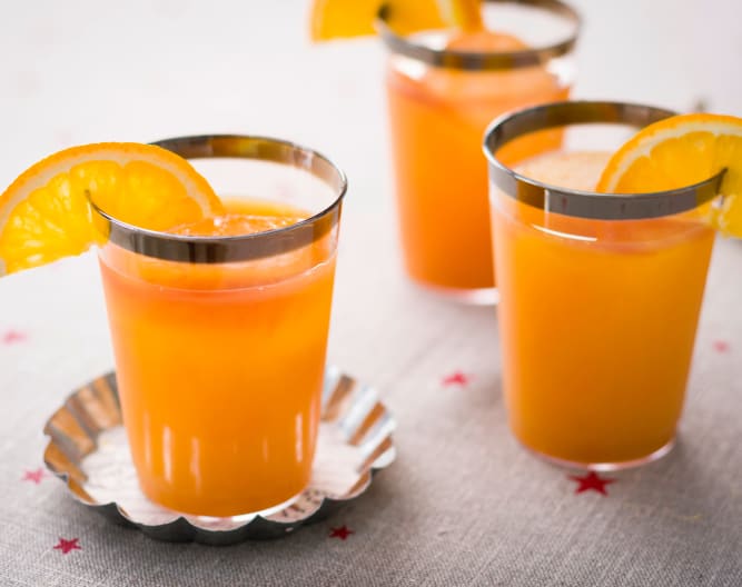 Ponga en el vaso el zumo de limón, el zumo de naranja, el zumo de mandarina, el azúcar y los hielos. Mezcle 20 seg/vel 2. Vierta en 4 vasos y añada en el centro de cada uno 2 cucharadas de granadina. Decore con las rodajas de naranja y sirva.