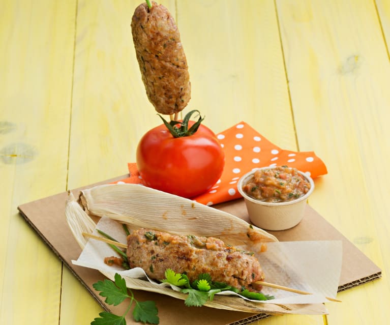 BROCHETAS DE CARNE PICADA Y ALIÑO DE TOMATE