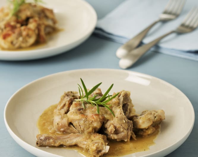 Esta receta de conejo guisado es ideal para tomar después del ejercicio por su alto contenido en proteínas de elevado valor biológico, y un aporte perfecto de grasas monoinsaturadas procedentes del aceite de oliva virgen extra. Importantes estas últimas para el correcto funcionamiento del organismo también durante el ejercicio, ya que sin las grasas sería imposible absorber y movilizar vitaminas liposolubles como A, D, E y K, indispensables para una correcta función hormonal.