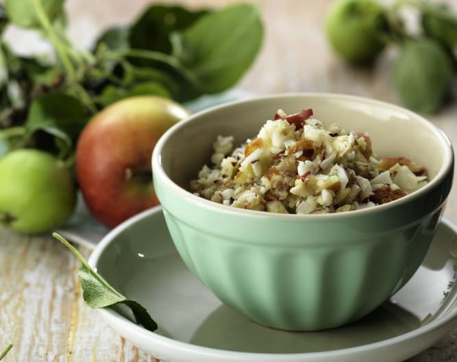 Sustituye las almendras por nueces de Brasil, añade una pera además de la manzana o sustituye la manzana por la pera.