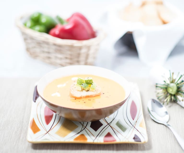 Una crema de calabacines con pimientos para entrar en calor, altamente nutritiva y reconfortante.