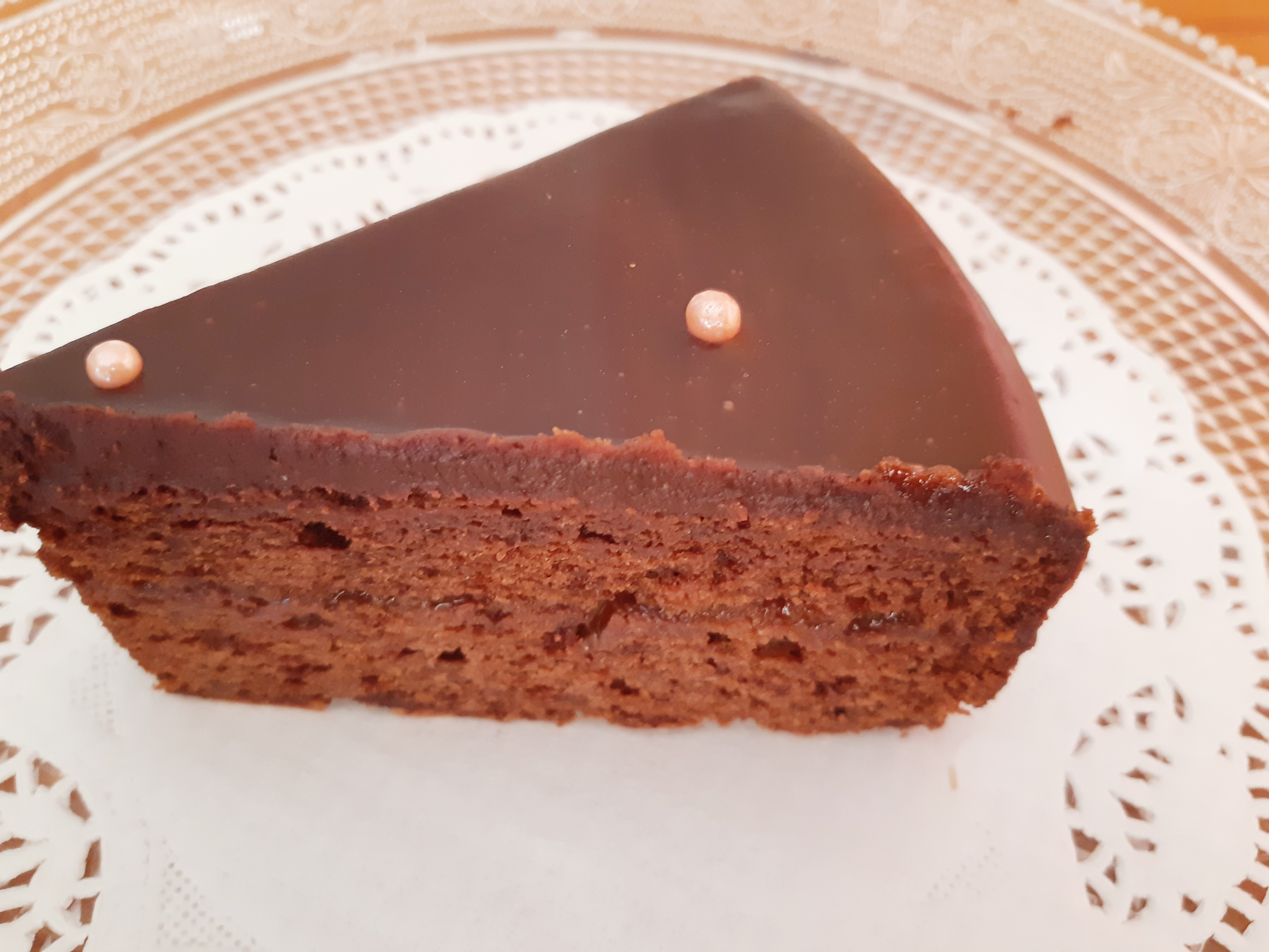 Corta el bizcocho por la mitad y rellena con 200 g de mermelada de albaricoque. Cubre con la otra mitad del bizcocho y extiende el resto de la mermelada en una capa fina por toda la superficie y los laterales.