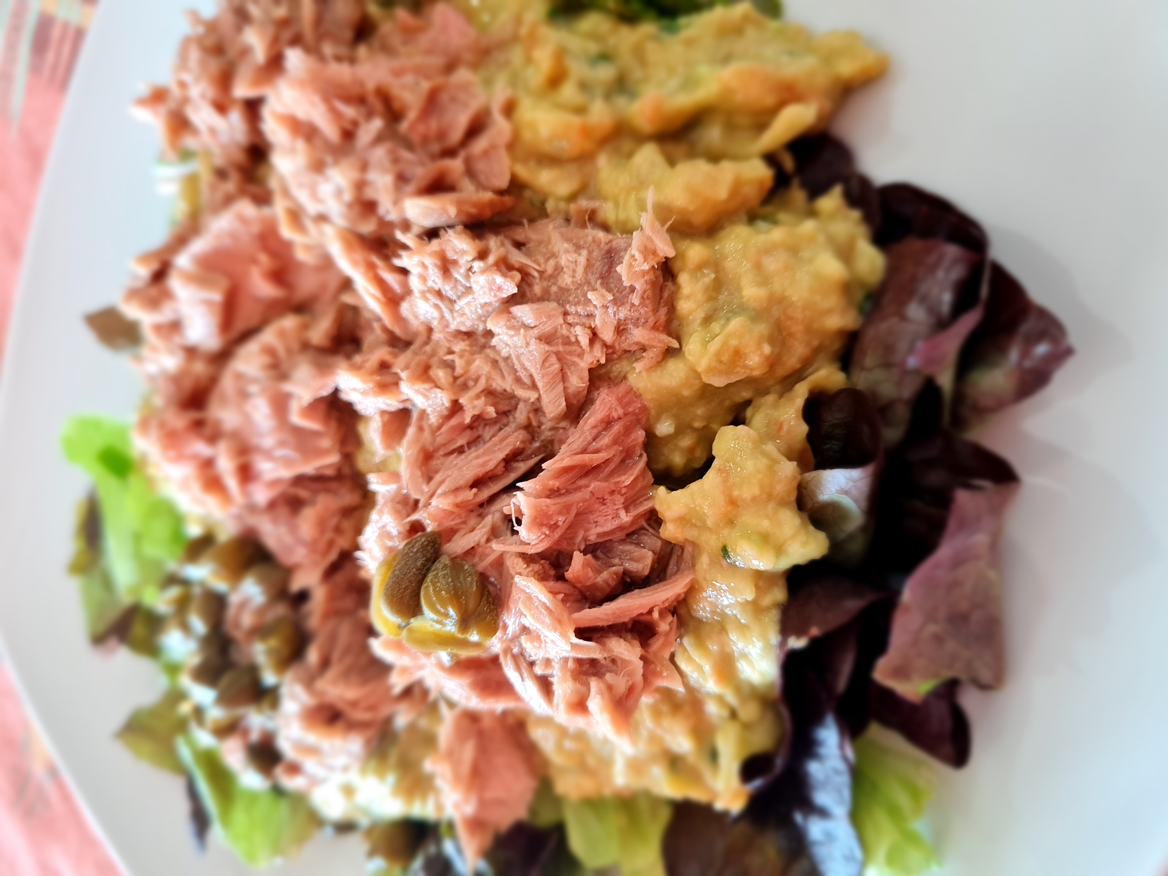 Yo hoy lo he preparado en ensalada, y le he incorporado hojas de lechuga, un poquito de atún y unas alcaparras, lo he aliñado y listo para comer, sano y delicioso