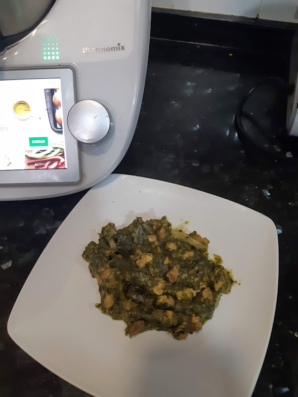 ¿Se puede comer trinxat con otras verduras? Por supuesto, solo faltaría; yo no tenia col, asi que como lo que tenia eran acelgas, de ahí que cambiara la col por acelgas, manteniendo la patata como base. También admite grelos, espinacas, coliflor y casi cualquier verdura que se te ocurra. ¡¡la verdad que estaba delicioso!!