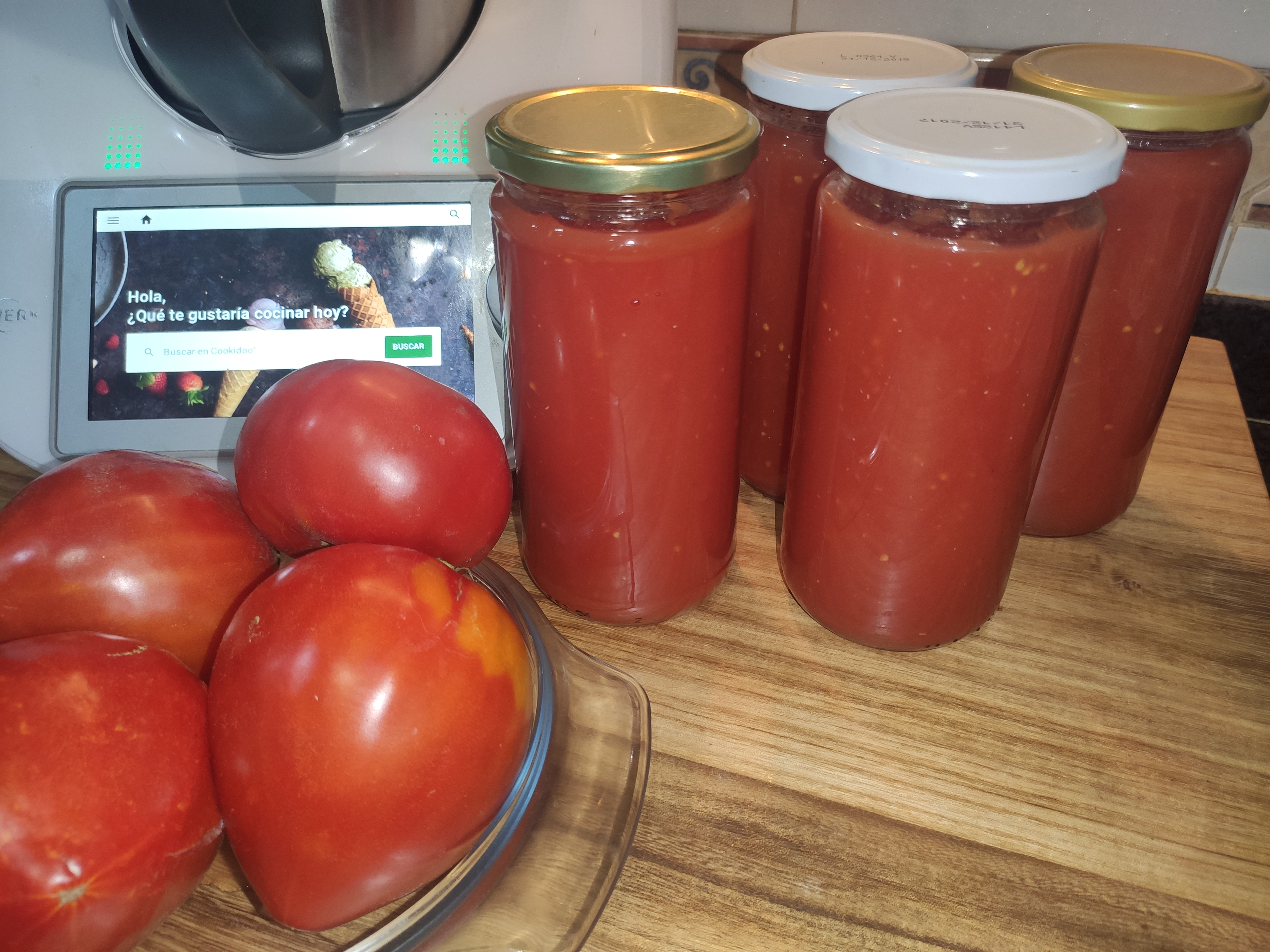 Va muy bien tener tomate triturado en conserva, os servirá como base en infinidad de recetas y ahorraréis tiempo teniéndola ya preparada y lista para usar.
