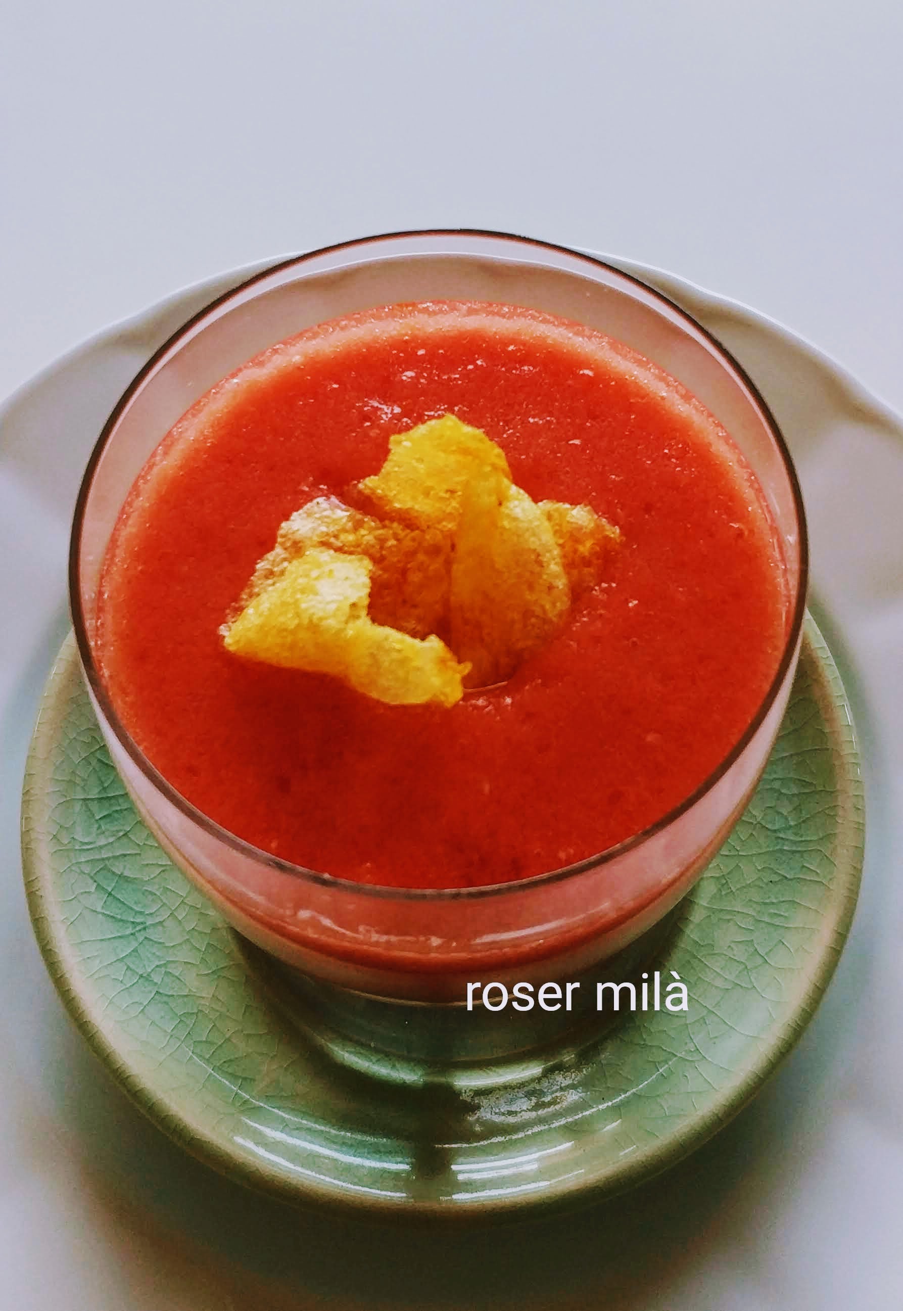 Posar tots els ingredients al vas del Thermomix. Triturar 4 minuts, vel 10. Comprovar la textura i si és massa espès, afegir una mica d’aigua.