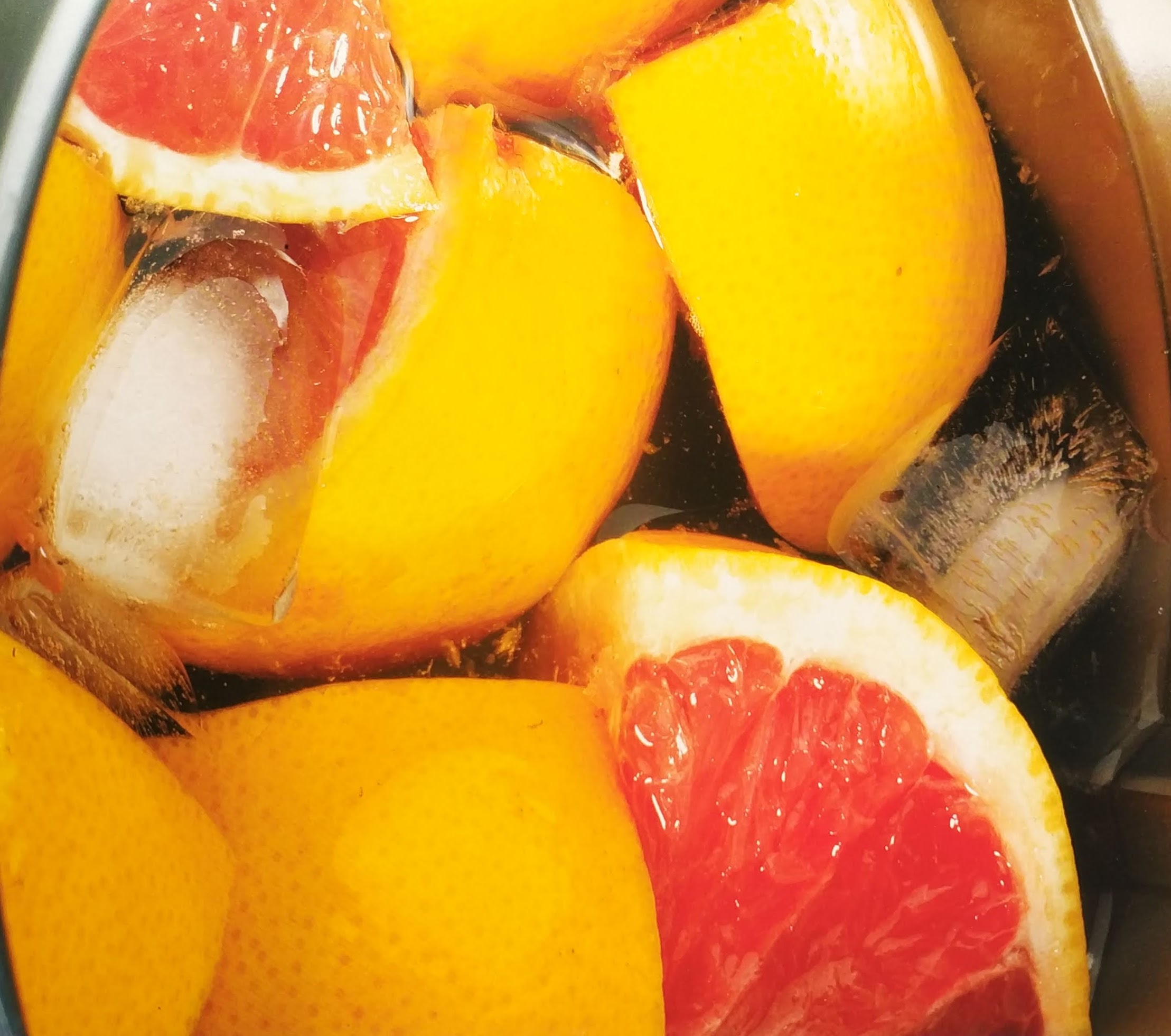 Posar al got del Thermomix, l’aigua, el sucre i l’aranja tallada a octaus. Si no és el model TM6 s’ha d’aguantar el”cubilet” amb la mà. Activar el turbo durant 2 seg, si es vol més trossejat posar 1 seg més de turbo.