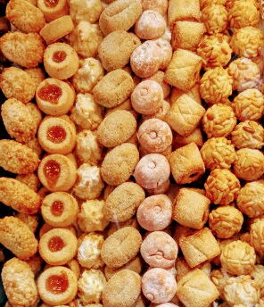 pinyons, coco, cafè, codony......... i el que agradi per decorar i perfumar.
