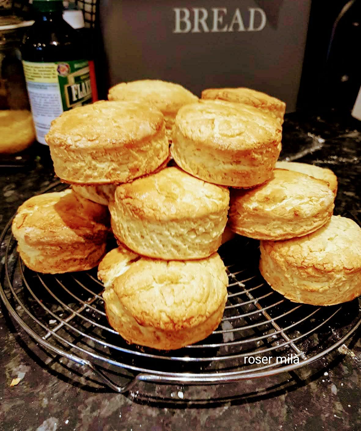 Tot seguit, afegir al Thermomix la farina, la mantega (és millor si ha estat fora de la nevera una estona), l’impulsor i la sal. Programar 2 minuts vel espiga. Estendre la massa sobre la taula amb un corró, fins a obtenir un gruix d’uns 4 cm. Amb un cèrcol o un got de vidre d’uns 7-10 cm de diàmetre, fer els escons i posar-los sobre un silpat en una safata de forn.
