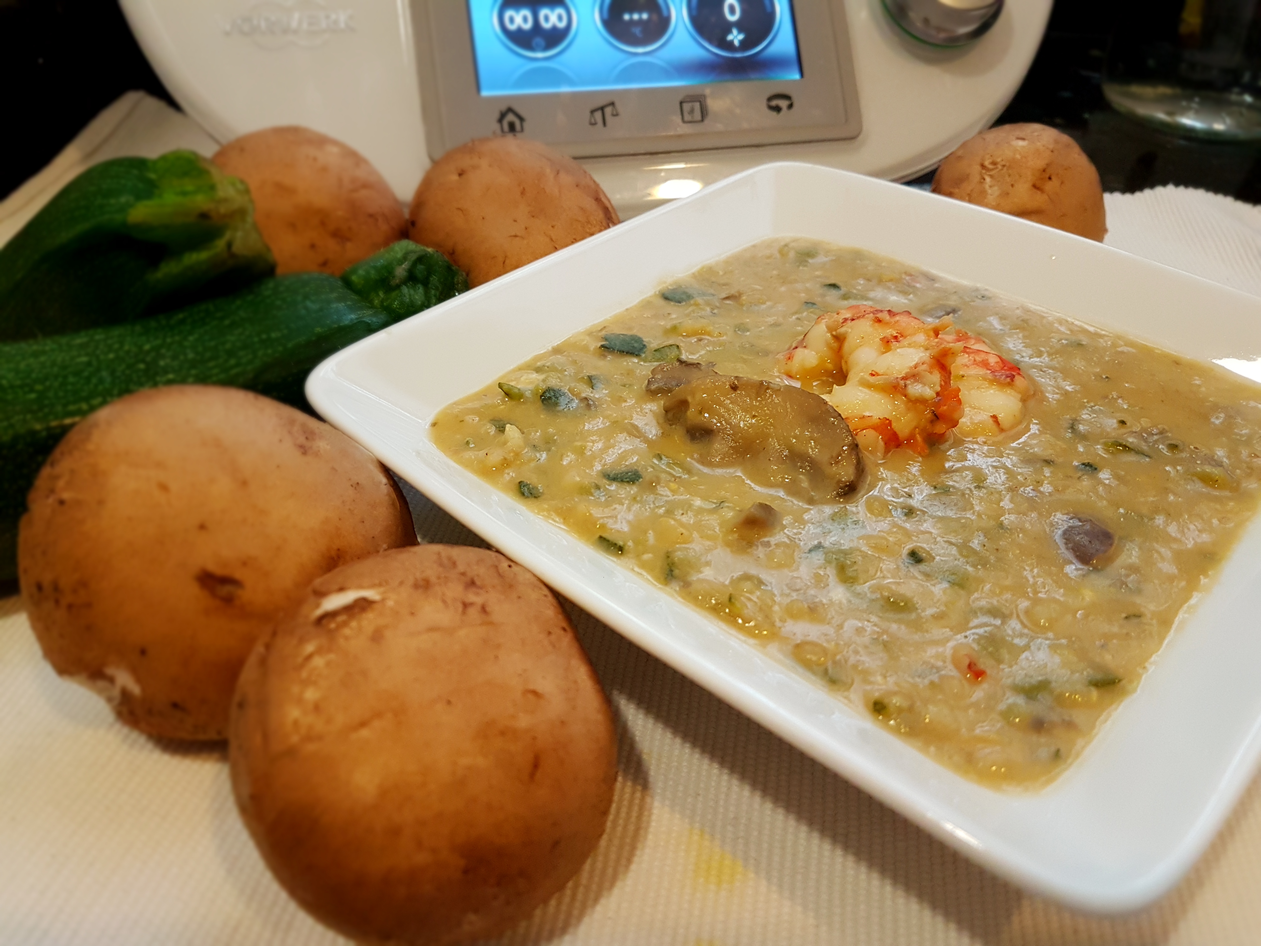 LoveYourself! Arroz integral caldoso con calabacín, portobello y gambones