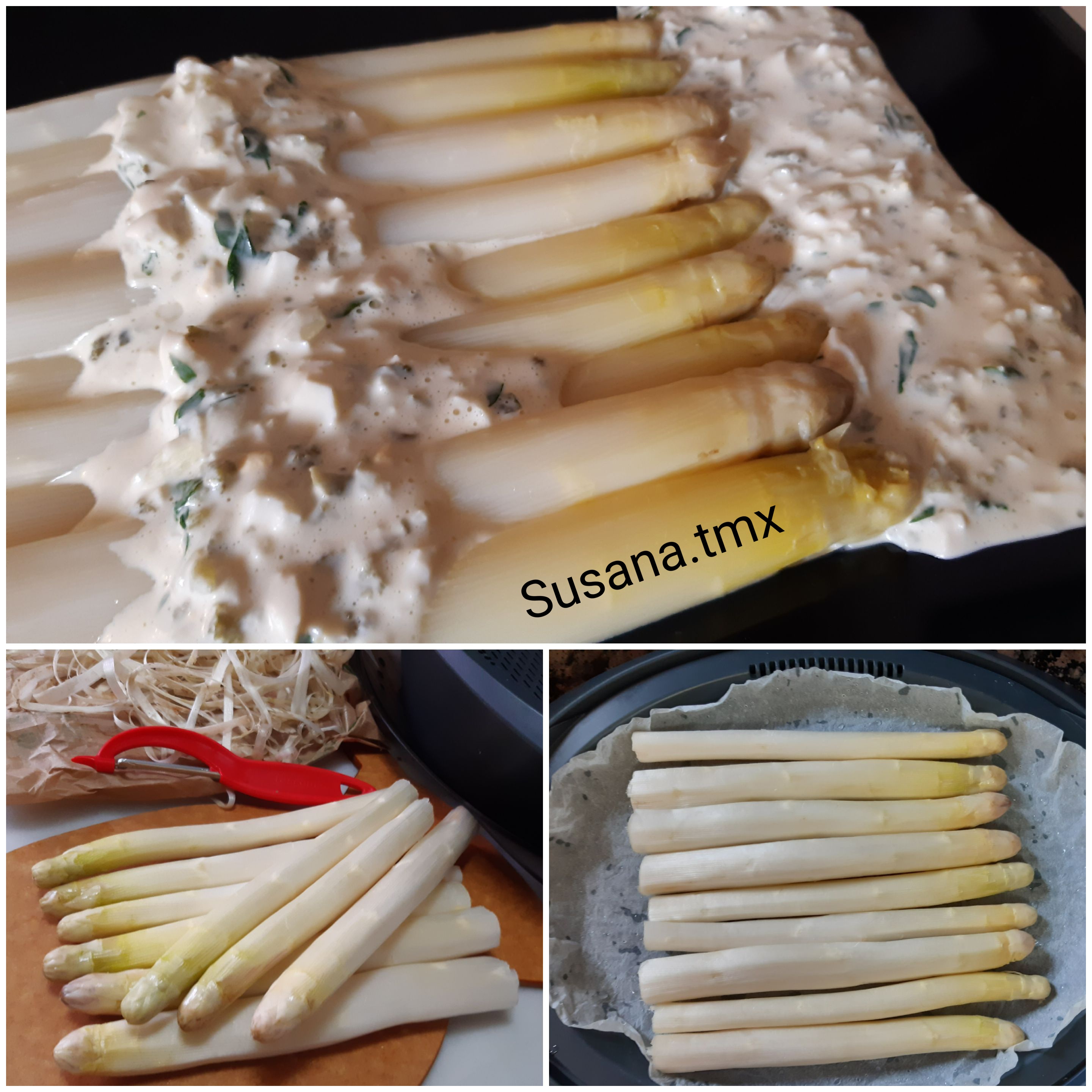 He utilizado la receta Espárragos blancos frescos gratinados de Cookidoo para la coción de los espárragos en el Varoma.
