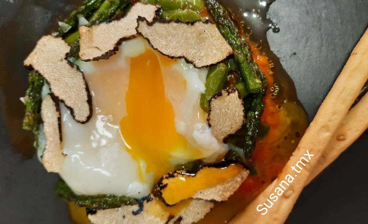 Huevo a baja temperatura con espárragos trigueros y trufa fresca con Thermomix