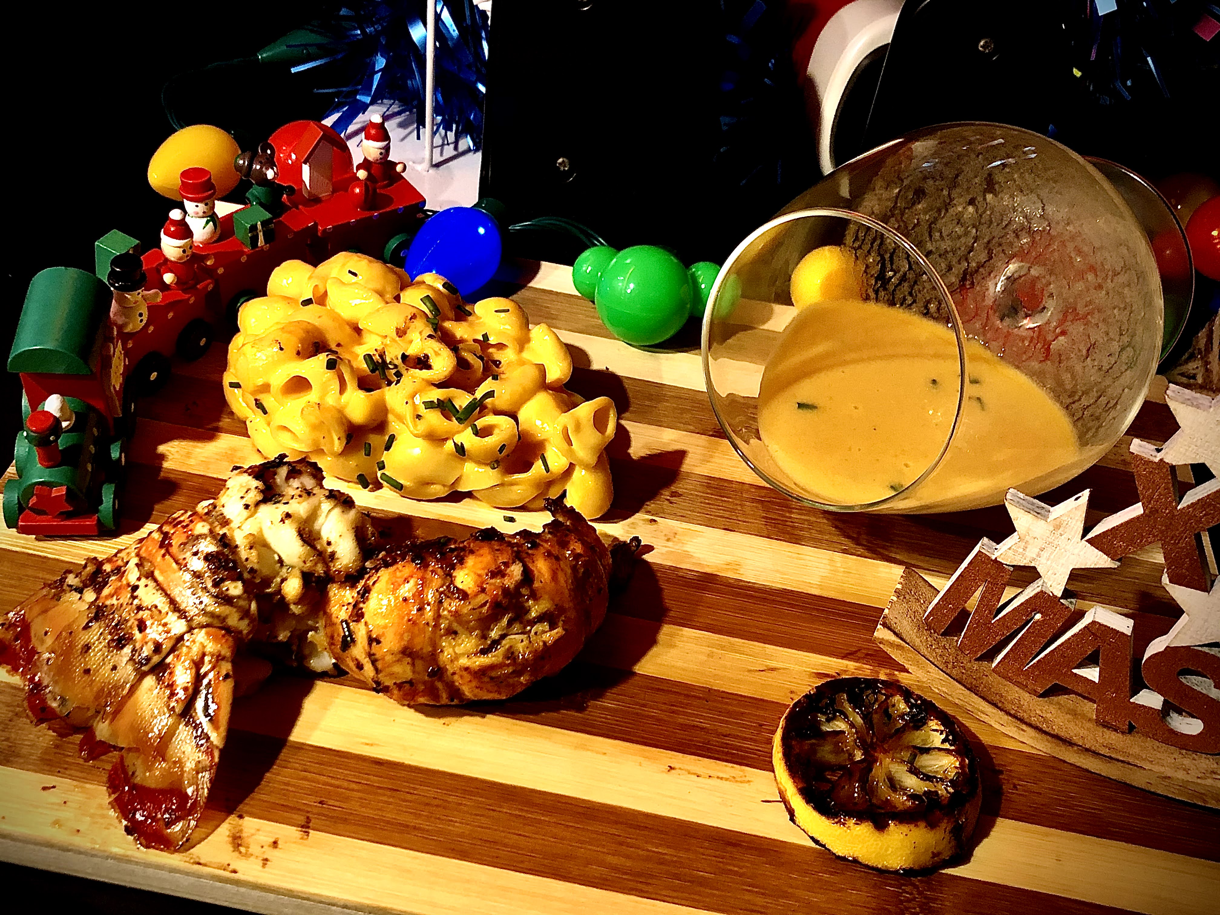 Colas de langosta con mac & cheese trufado